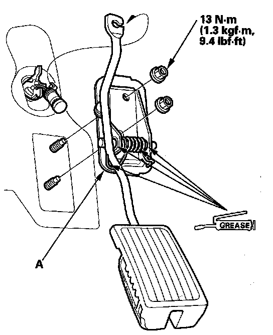 Remove the accelerator pedal bracket (A).