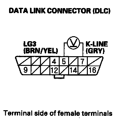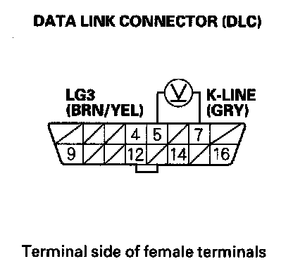 3. Measure voltage between DLC terminals No. 5 and No. 16.