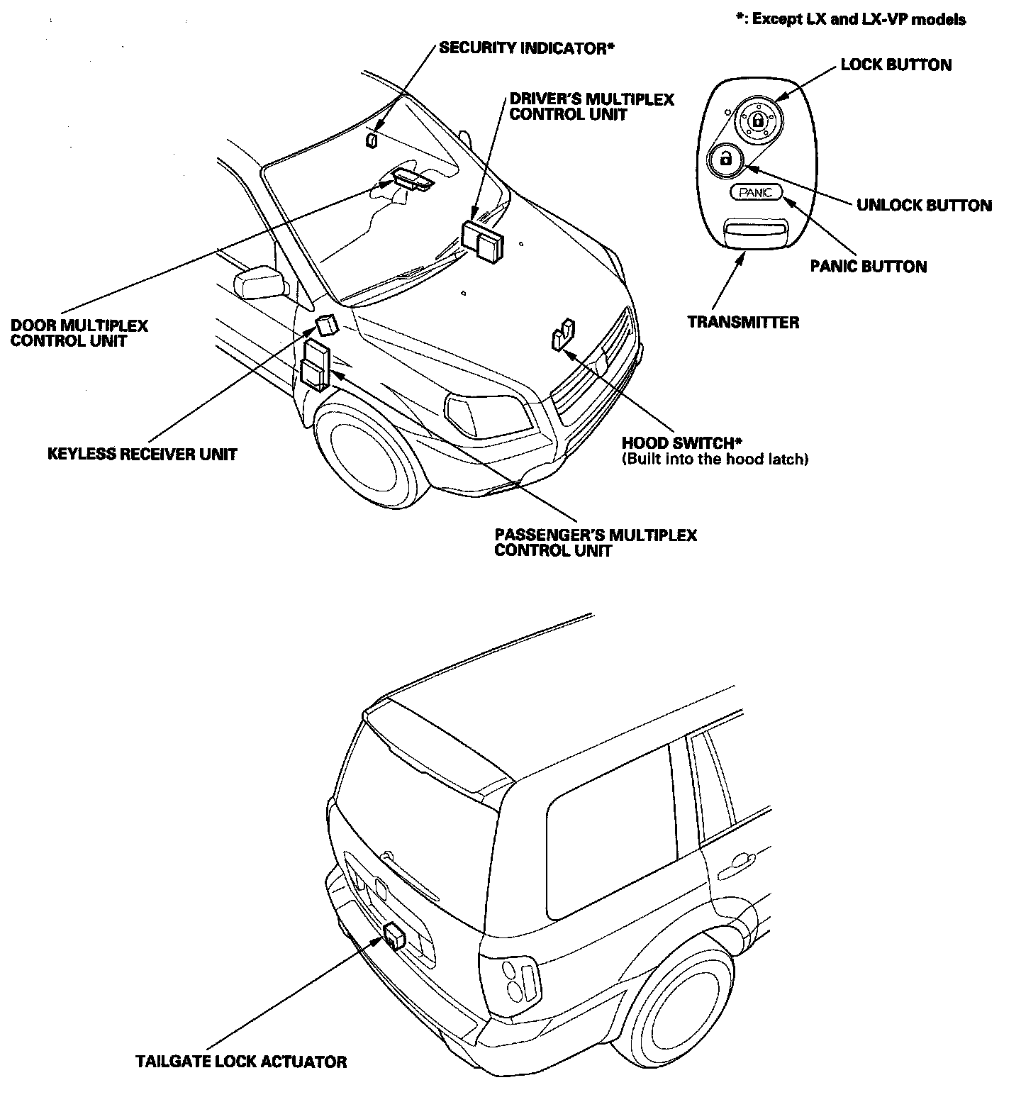 Keyless/Power Door Locks/Security System Component Location Index: