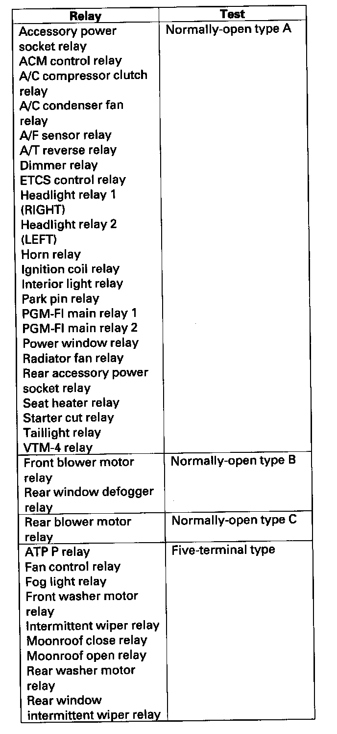 Use this chart to identify the type of relay, then do the test listed for it.
