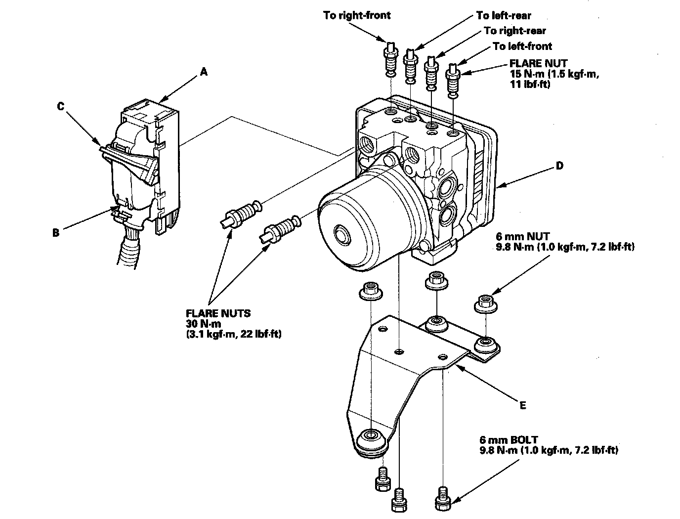 4. Remove the VSA modulator-control unit with bracket (E) from the body.