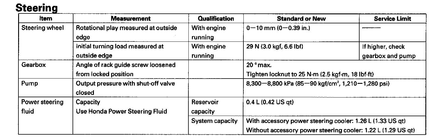 Home >> Honda >> 2008 >> Pilot 2WD V6-3.5L >> Repair and Diagnosis >> Specifications >> Mechanical Specifications >> Steering