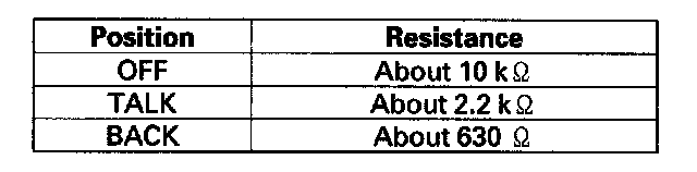 5. Measure the resistance between the No. 1 and No. 5 terminals in each switch position according to the table.