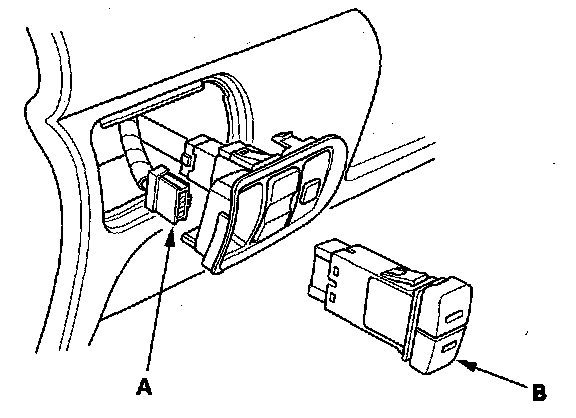 2. Disconnect the 13P connector (A), then release the clips of the cruise control main switch, and push the cruise control main switch (B) out of the panel.