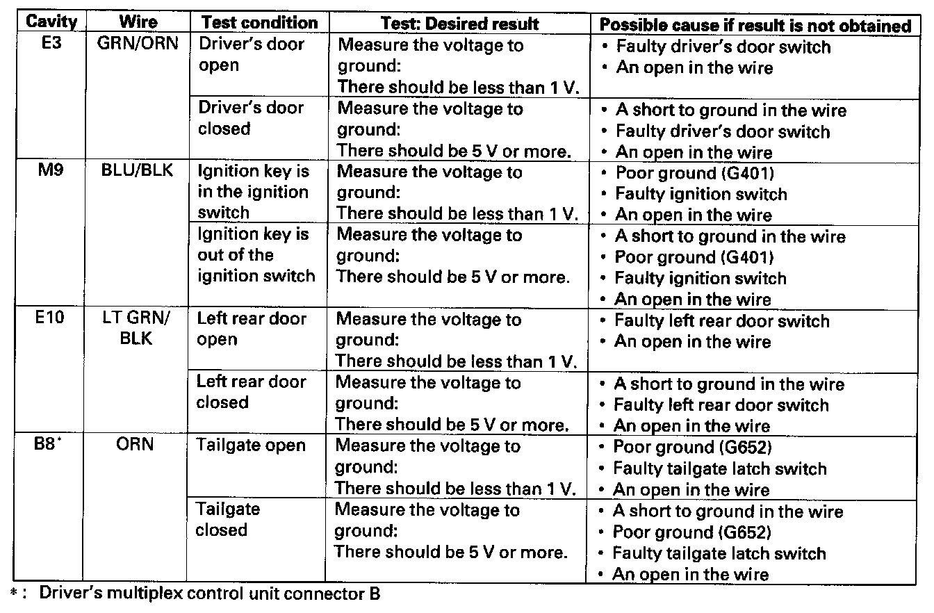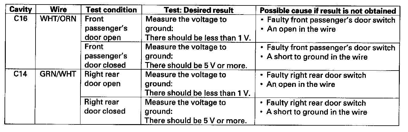 Home >> Honda >> 2008 >> Pilot 4WD V6-3.5L >> Repair and Diagnosis >> Lighting and Horns >> Testing and Inspection >> Entry Lights Control System >> Control Circuit Input Test
