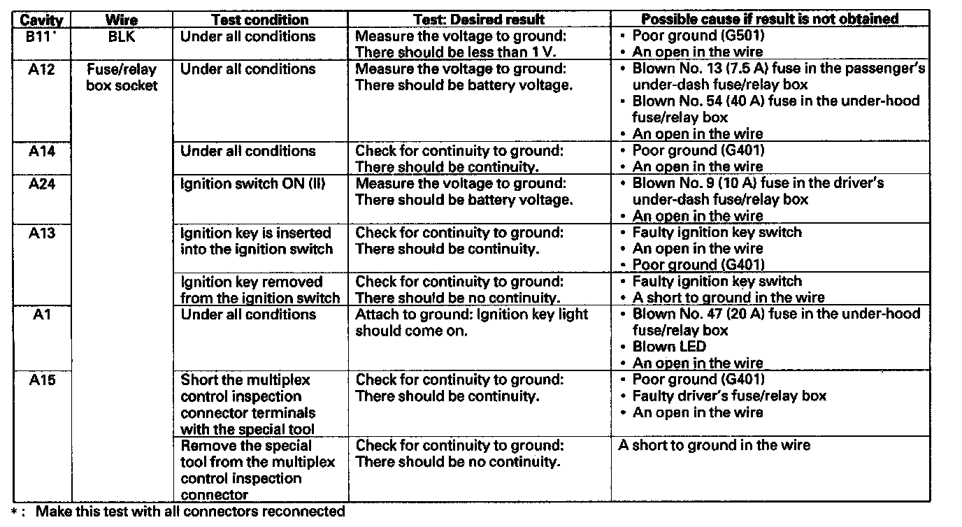 Home >> Honda >> 2008 >> Pilot 4WD V6-3.5L >> Repair and Diagnosis >> Powertrain Management >> Computers and Control Systems >> Information Bus >> Testing and Inspection >> Multiplex Control Unit Input Test