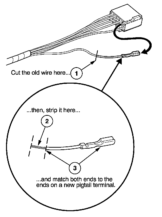 3. Select a pigtail terminal that matches the original wire at both ends (same kind of terminal and same diameter bare wire).