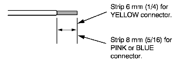 7. If you are using a yellow splice connector, strip about 6 mm (1/4 inch) of insulation off the ends of both wires. If you are using a pink or blue splice connector, strip off about 8 mm (5/16 inch) of insulation.