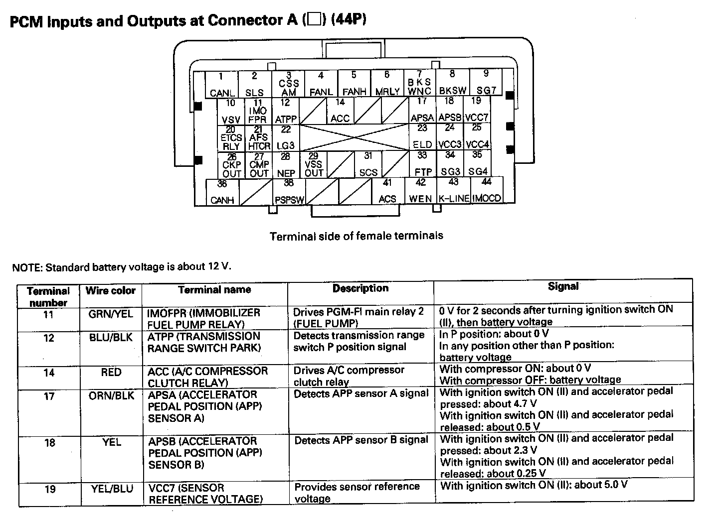 PCM Inputs And Outputs At Connector A (44P) Part 4: