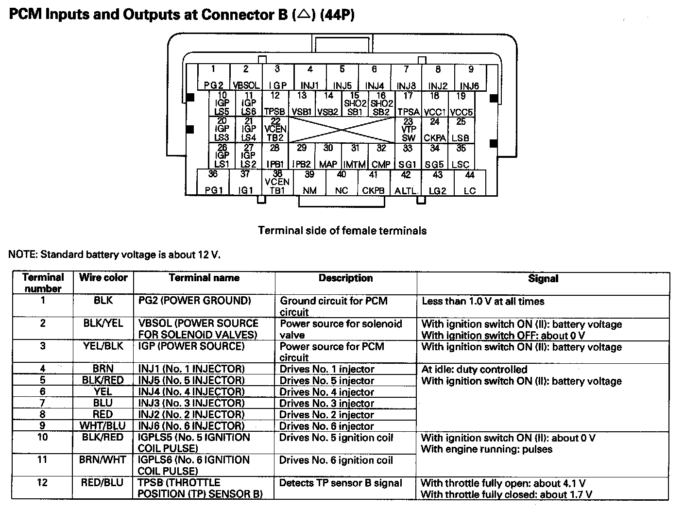 PCM Inputs And Outputs At Connector B (44P) Part 1: