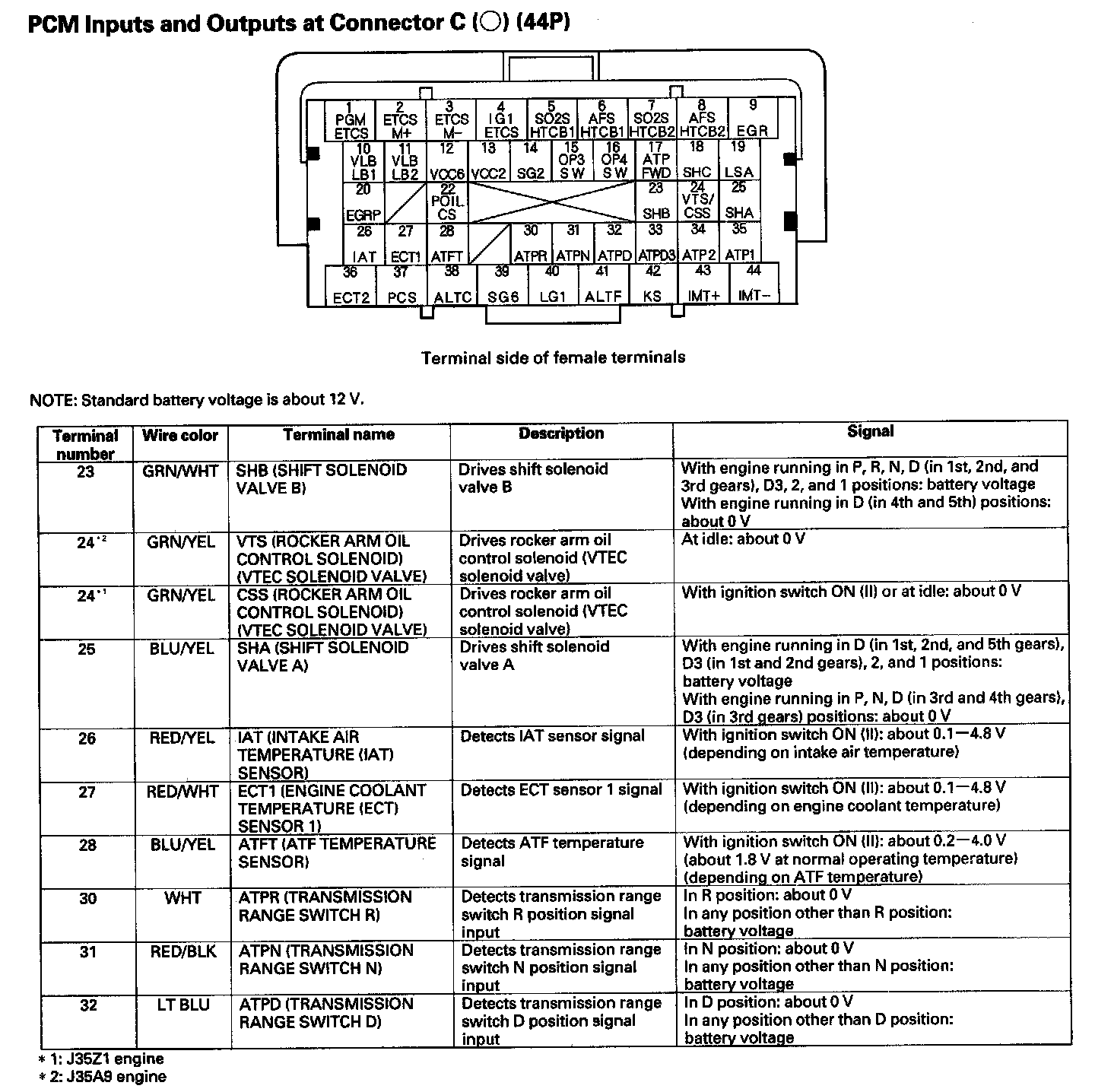 PCM Inputs And Outputs At Connector C (44P) Part 2: