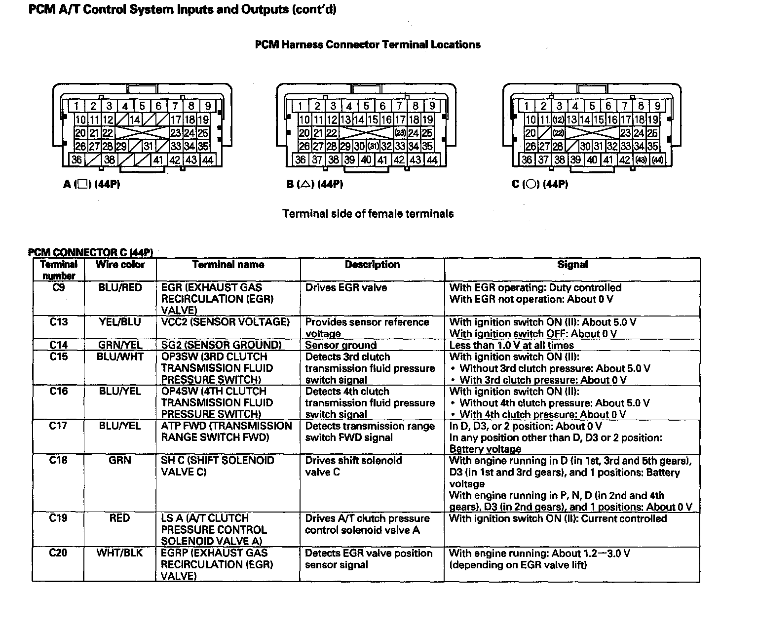 PCM A/T Control System Inputs and Outputs (Part 3):