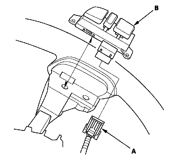 4. Disconnect the 7P connector (A), then remove the cruise control set/decel, resume/accel, cancel switch (B).