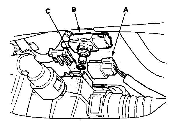 Install the parts in the reverse order of removal with a new O-ring (C).