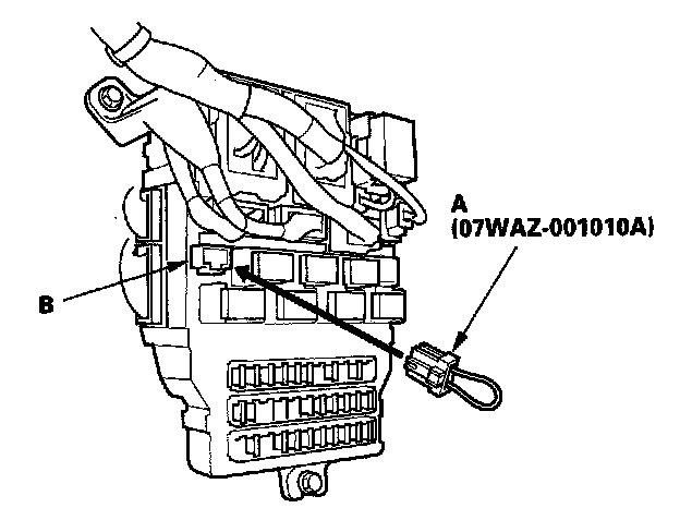 4. Connect the MPCS service connector (A) to the MCIC socket (B) in the under-dash fuse/relay box.
