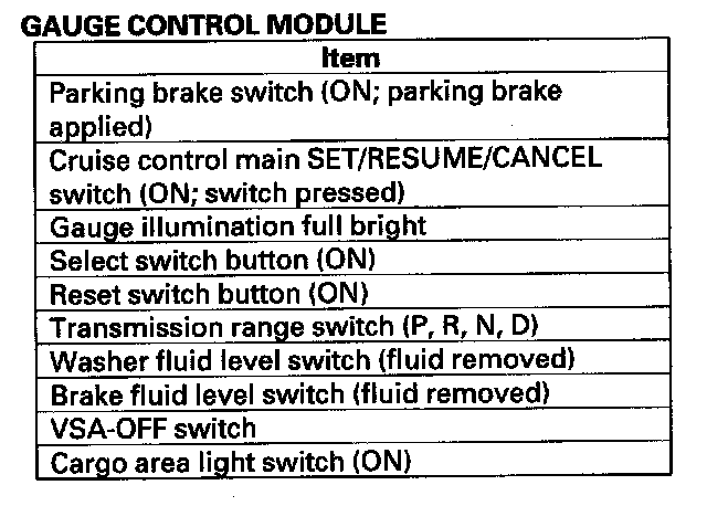 6. Check for B-CAN DTCs indicated by the gauge control module odometer/trip meter display while still in Test Mode 1. Push the odometer trip meter select/switch button to display the next code. After you get to the last code, the display shows END. If no DTCs are stored, the display will read NO.