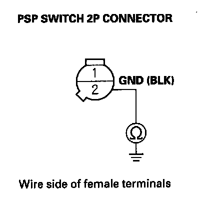 13. Check for continuity between PSP switch 2P connector terminal No. 1 and body ground.