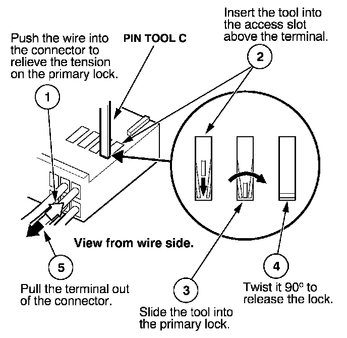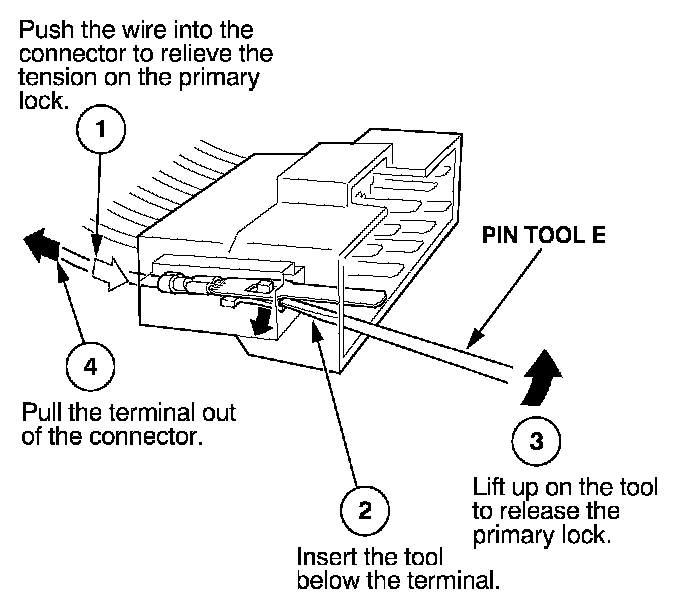 Before you begin, inspect the wire you are about to repair for damage and length. Make sure the wire will be long enough to make a terminal repair without stretching it when you reinstall the terminal in the connector. If the wire is too short, or if access to the connector is too restricted to make a terminal repair, you may need to install a pigtail terminal (a short length of wire with a factory-crimped terminal on it). Refer to HOW TO INSTALL PIGTAIL TERMINALS.