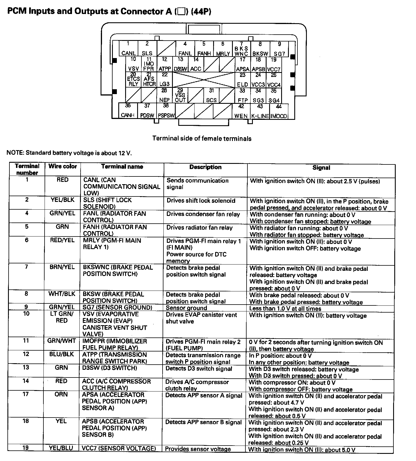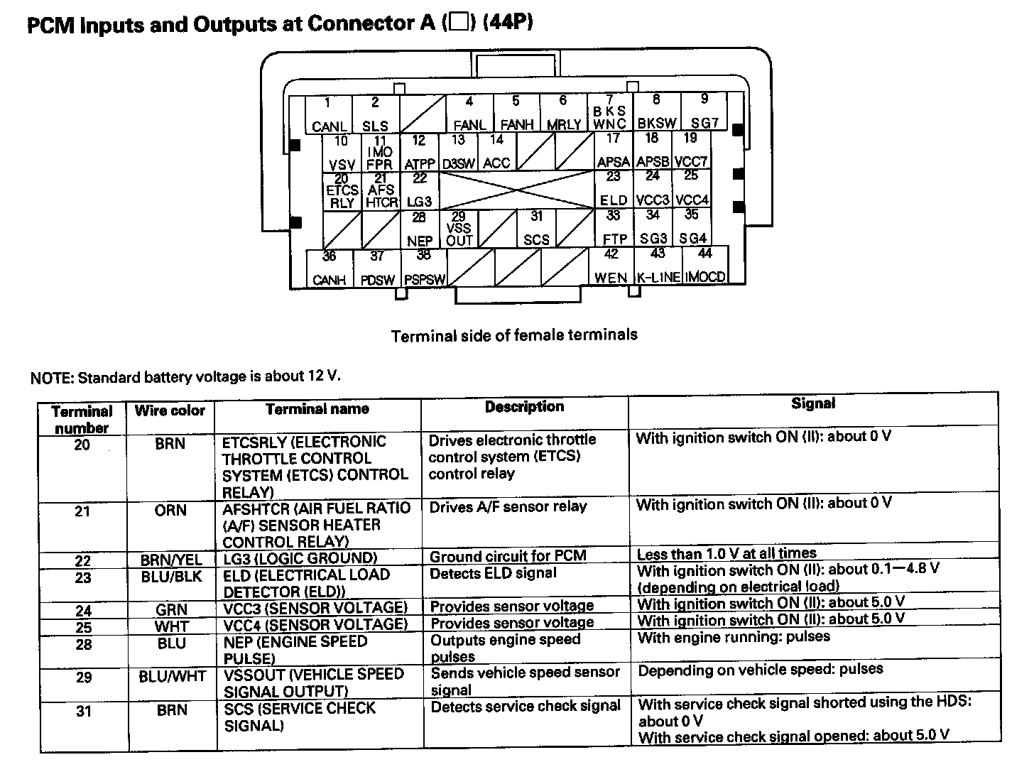 Home >> Honda >> 2008 >> Ridgeline V6-3.5L >> Repair and Diagnosis >> Powertrain Management >> Relays and Modules - Powertrain Management >> Relays and Modules - Computers and Control Systems >> Engine Control Module >> Testing and Inspection >> Pinout Values and Diagnostic Parameters