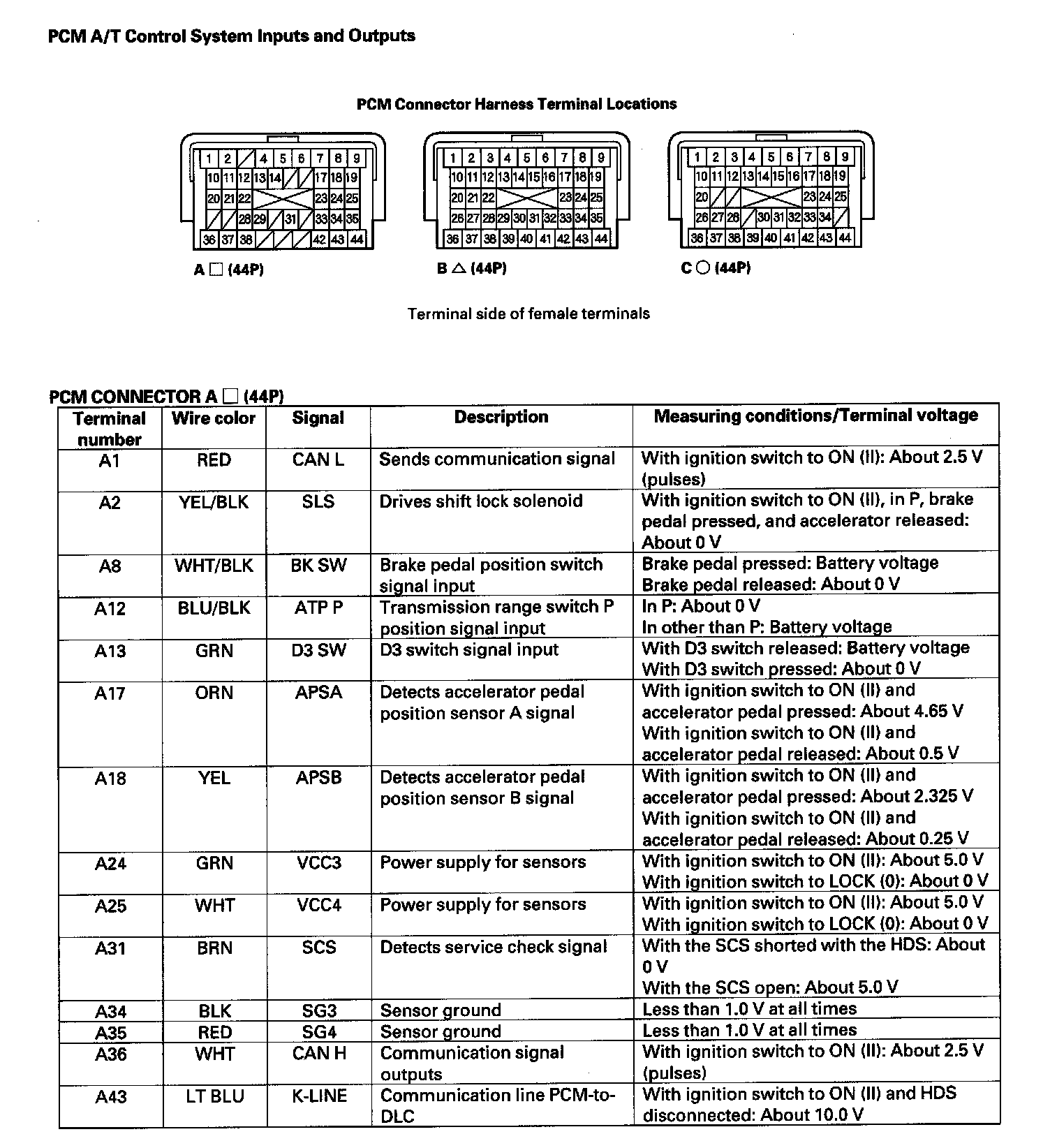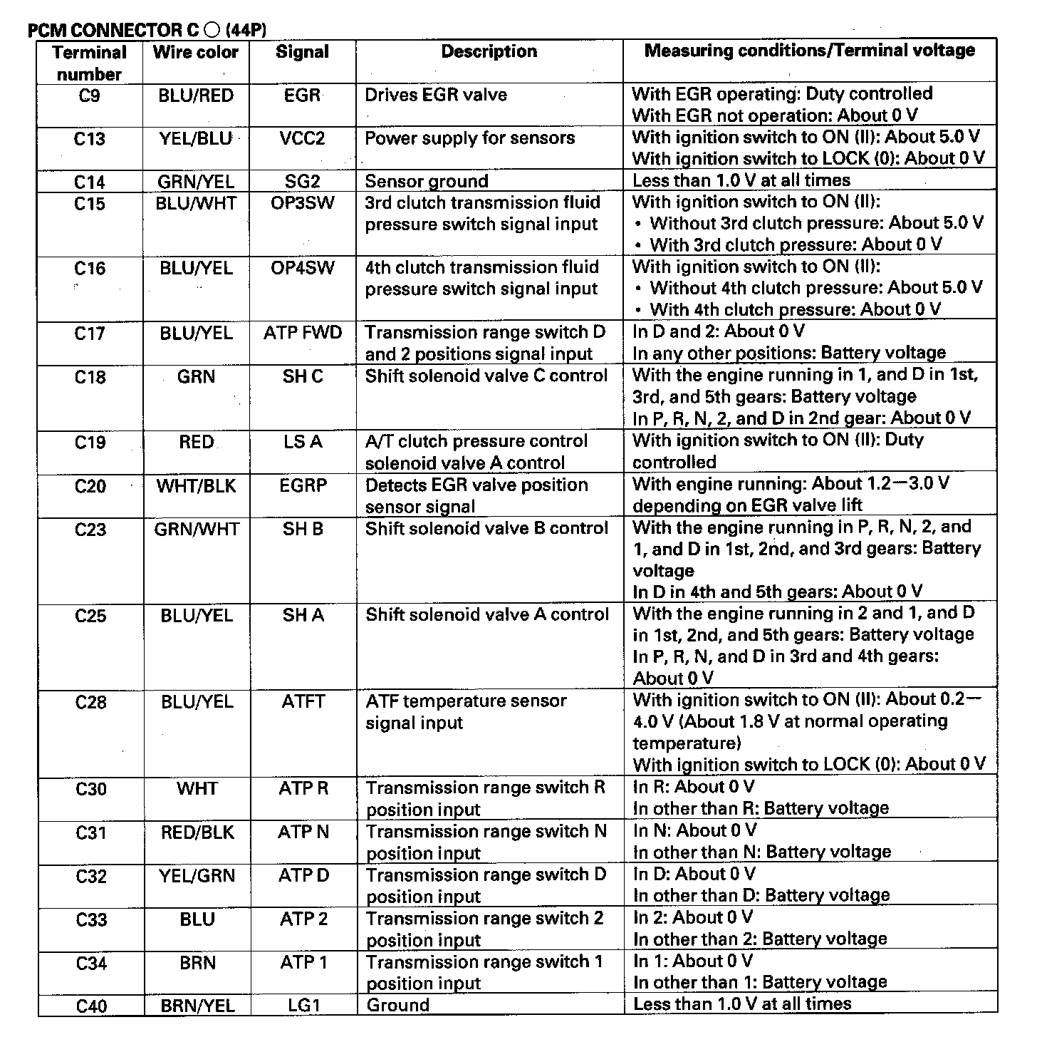 Control Module Pinout Values