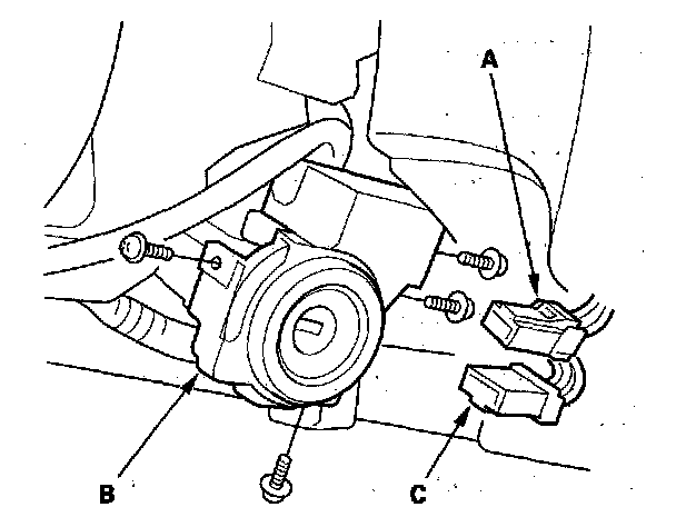 3. Disconnect the 7P connector (C) from the ignition key switch.