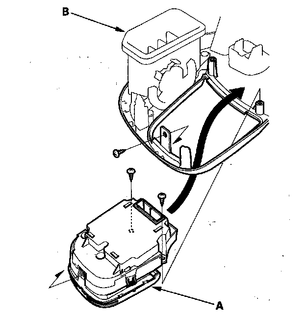 2. Remove the self-tapping screws and the HVAC control unit (A) from the instrument panel (B).