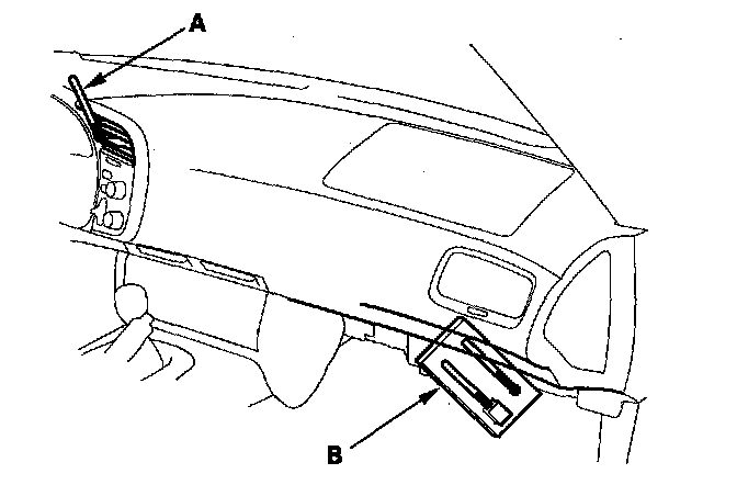 4. Insert a thermometer (A) in the center vent, and place another thermometer (B) near the blower unit.