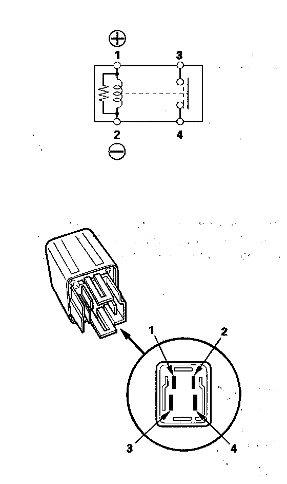 - There should be continuity between the No. 1 and No. 2 terminals when battery positive terminal is connected to the No. 4 terminal, and battery negative terminal is connected to the No. 3 terminal.