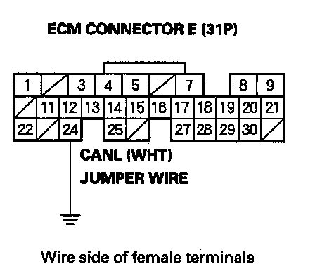 13. Connect ECM connector terminal E24 to body ground with a jumper wire.
