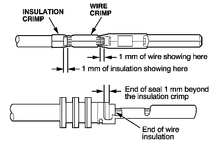 - If you do not have a wire seal, then use the next larger size crimp slot. Position the crimping tool over the insulation crimp section of the terminal, then squeeze the tool with both hands until the stops make contact.