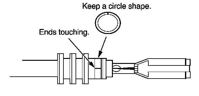3. Strip the insulation off the end of the wire so the wire fits in the new terminal as shown. (If the wire has a wire seal, replace it with a new one from the kit.)