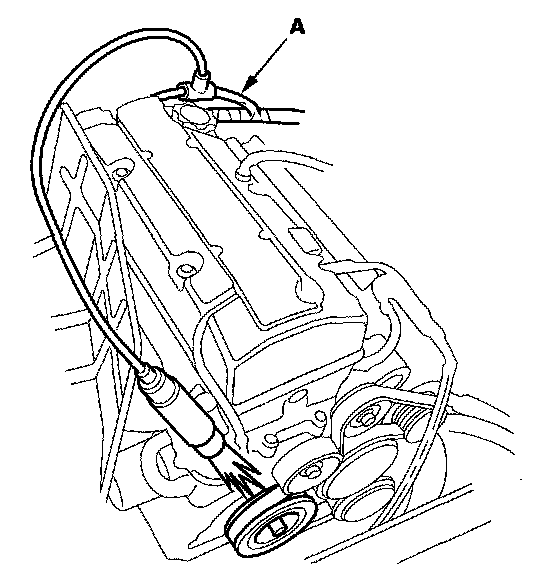 7. Free the service loop (A) from the engine wire harness, then connect the timing light to the service loop.