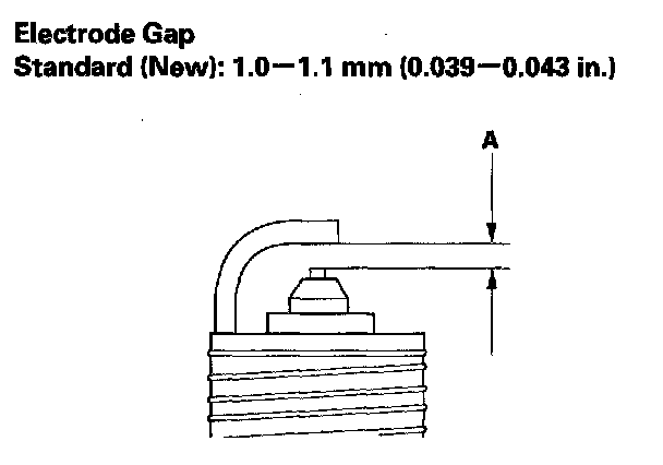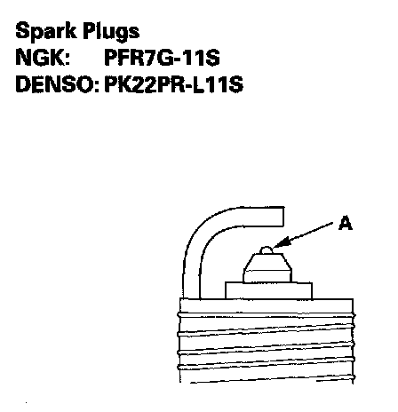 3. Do not adjust the gap of platinum tip plugs (A); replace the spark plug if the gap is out of specification.