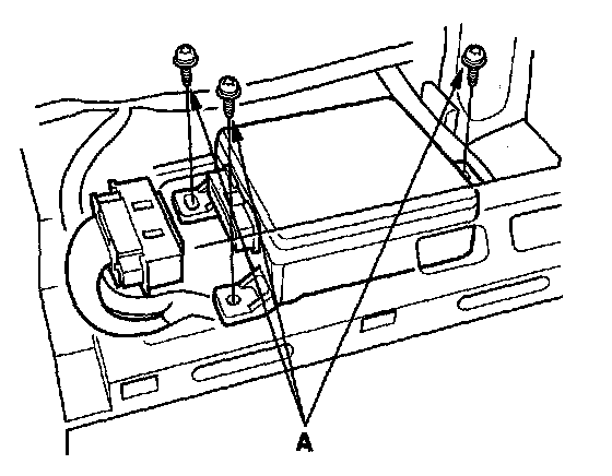 5. Remove the three TORX bolts (A) from the SRS unit, then pull out the SRS unit from the bracket.