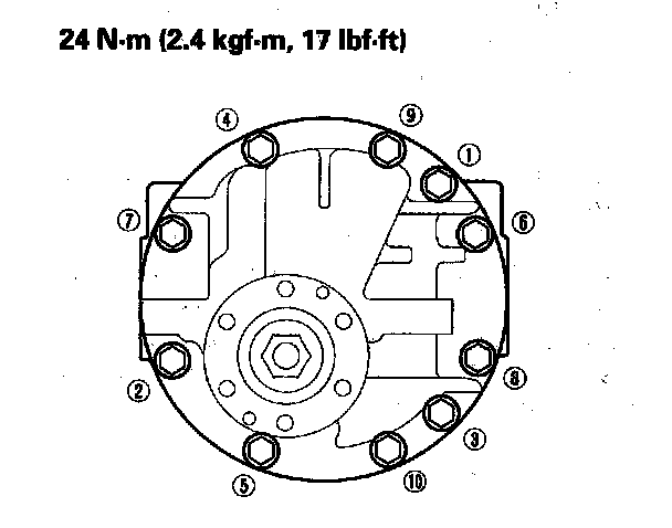 Differential CaseTighten the ten mounting bolts in a crisscross pattern in several steps.