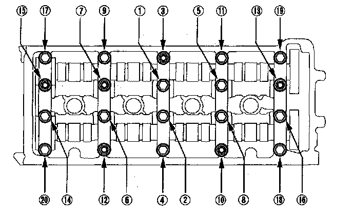 Tighten the bolts two turns at a time, in the sequence shown.