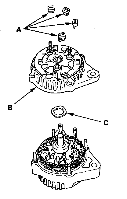 24. Reassemble the alternator in the reverse order of disassembly, and note these items: