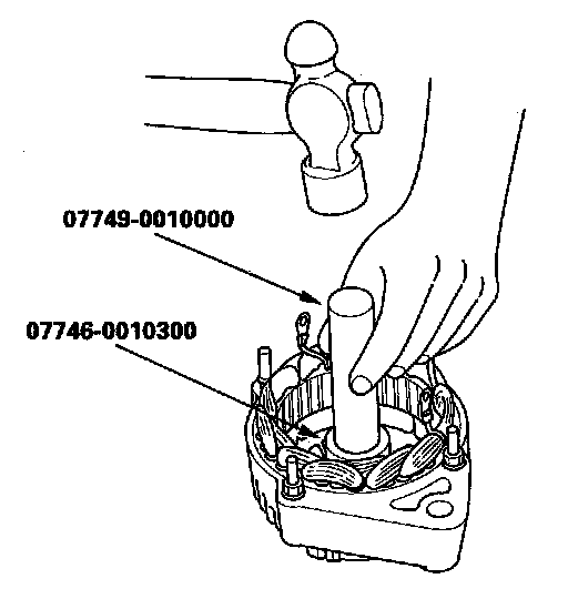 17. Install a new front bearing in the stator housing with a hammer, the handle driver, and attachment.