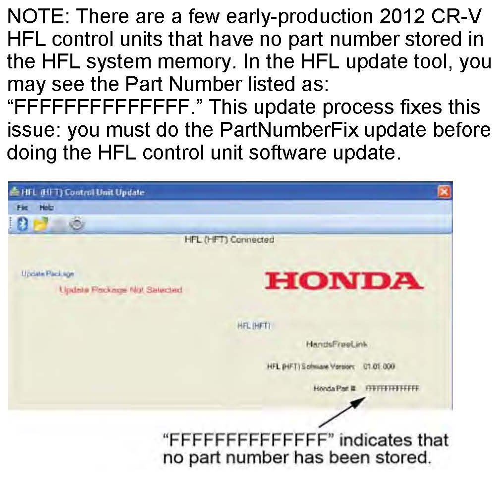 Home >> Honda >> 2008 >> S2000 L4-2.2L >> Repair and Diagnosis >> Technical Service Bulletins >> All Technical Service Bulletins >> Cell Phone - Programmable HFL (HFT) Unit Update Info. >> Part Number Fix Update Procedure - CR-V >> Vehicles With Navigation
