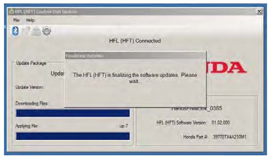 3. In the HFL update tool, a pop-up window alerts you when the part number fix update is finalizing, and then another pop-up informs you that the update has completed.