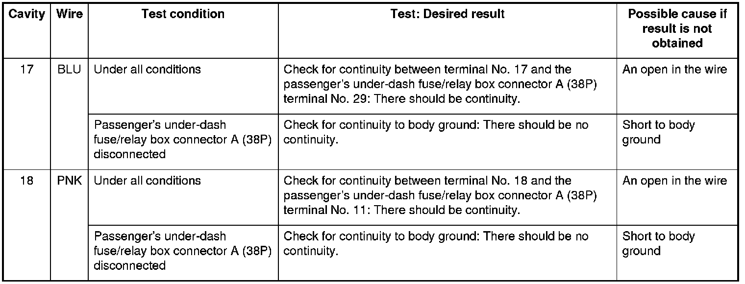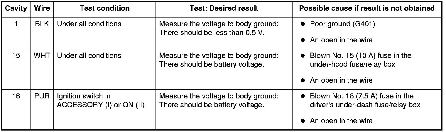 4. Reconnect the connector, and make these input tests at the connector.