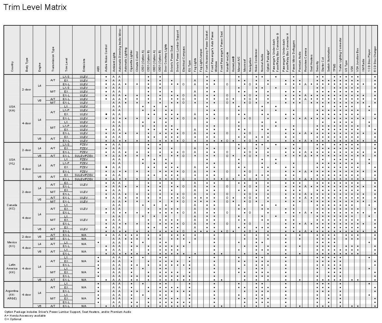 Trim Level Matrix