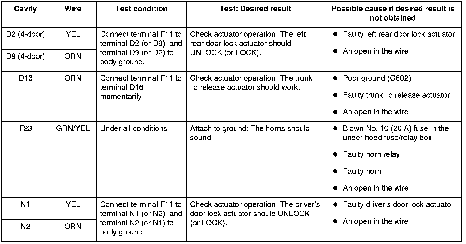 Home >> Honda >> 2009 >> Accord L4-2.4L >> Repair and Diagnosis >> Body and Frame >> Locks >> Keyless Entry >> Testing and Inspection >> Component Tests and General Diagnostics >> Keyless/Power Door Locks/Security System Control Unit Input Test