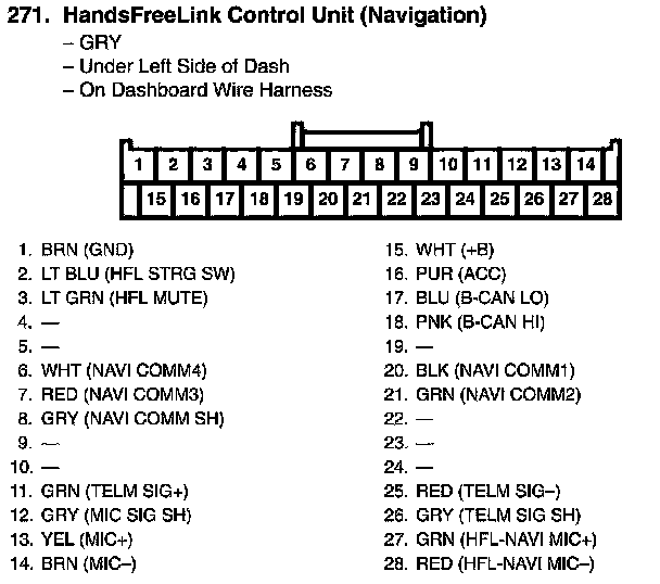 View 271 HandsFreeLink Control Unit Connector View (Navigation)