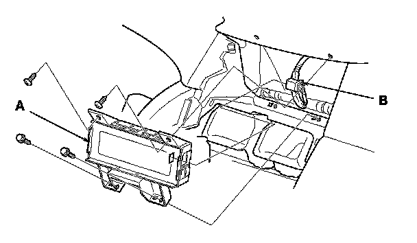 3. Disconnect the connector (B), and remove the audio-HVAC display unit.