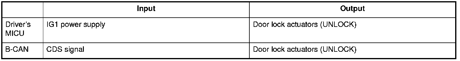 The driver's MICU control of the door lock actuators is based on IG1 and the SRS (CDS) signals.