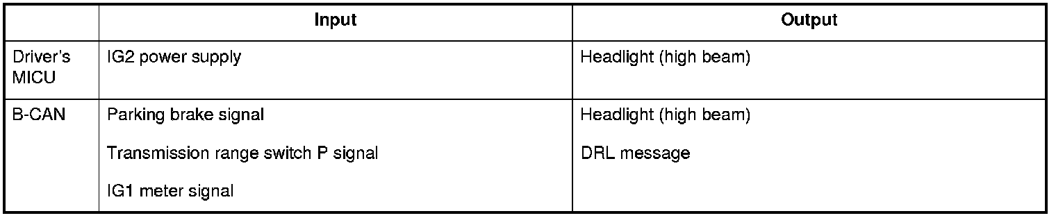 The driver's MICU control of the headlights as daytime running lights is based on input signals from each switch.