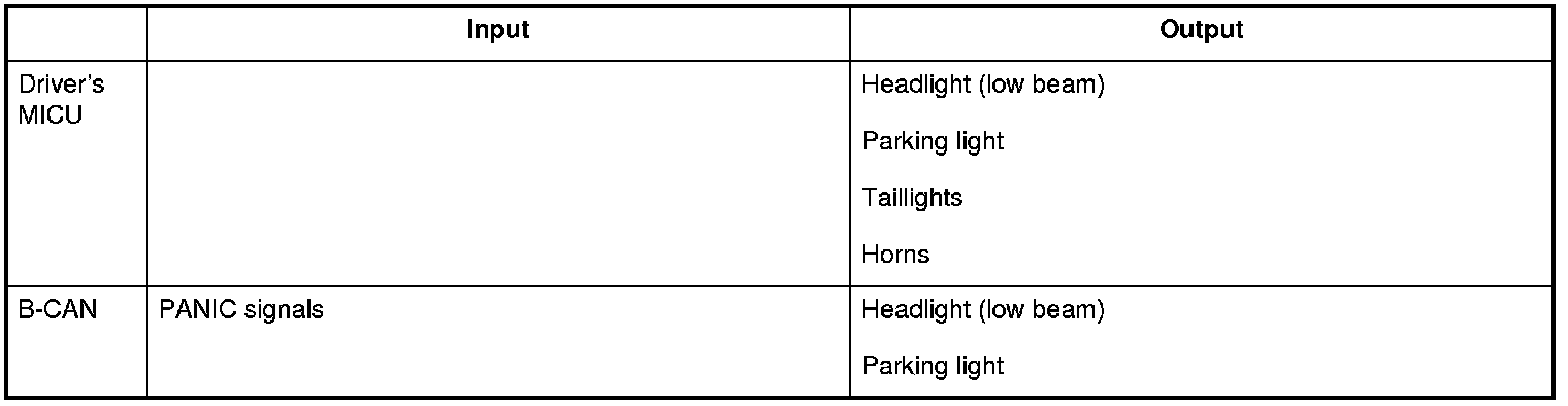 The driver's MICU control of the keyless PANIC operation is based on B-CAN signals.