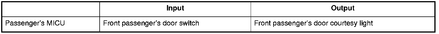 The passenger's MICU control of the front passenger door courtesy light is based on input signals from the front passenger door switch.