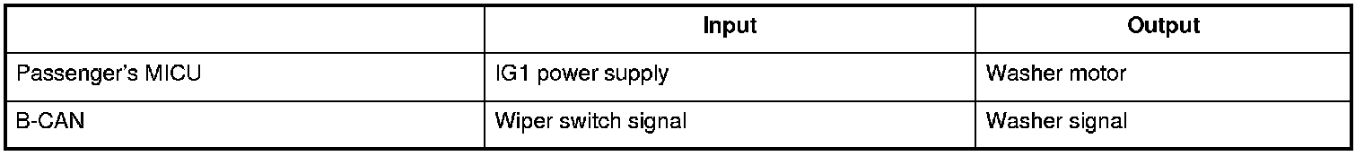 The passenger's MICU control of the washer motor is based on input signals from the wiper switch.
